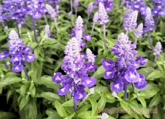 鼠尾草的花色比较多,常见的是紫色的,另外还有蓝色、粉色等多种颜色,花朵比较小,簇生在花枝上,是竖着的花穗,具有很高的观赏价值。