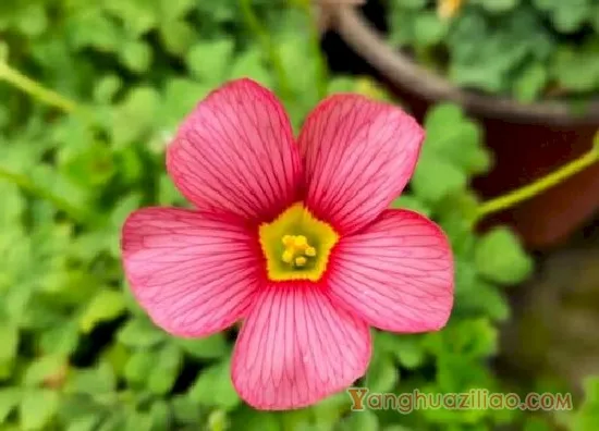 酢浆草一般是有三片叶子,而且分枝很多,一般开花时间是2月份,花的颜色是粉色的,它的花语是爱国和幸运,一般适合在温暖潮湿的环境中生长。