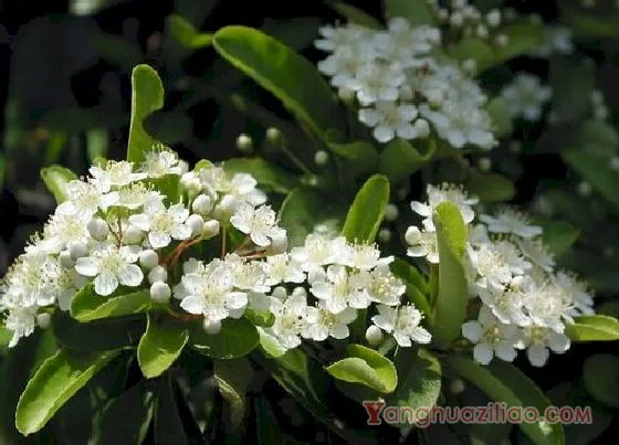 火棘的花期是在每年春季的三月份,它的花朵呈现为紧凑的白色,它的花枝上面通常有十几个花苞同时存在,火棘花朵的花期通常有一个月的时间。