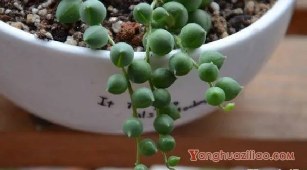 佛珠又叫珍珠吊兰,瞧这一串串的,系在手腕上都能做手链了,挂在高处,往下垂一片,就跟瀑布似的。佛珠吊兰性喜温暖湿润,较耐寒(江淮地区栽培时可耐0℃的低温),耐高温,最适温度为20-28℃左右。高温和低温时都生长缓慢,在高温环境中几乎休眠。佛珠吊兰夏季容易烂根,浇水不宜太频繁,需用小喷壶浇灌。佛珠吊兰春秋季应“薄肥勤施”,常在叶面喷施1-3‰的氮肥和磷酸二氢钾有利于使它更加翠绿肥大,提高观赏价值。佛珠吊兰春秋生长旺季,浇水要充足,盆土应经常保持湿润,并经常用与室温相近的清水喷洒枝叶,以防干尖,但不能积水。生长旺季半月施一次稀薄液肥,冬季浇水要少,停止追肥。