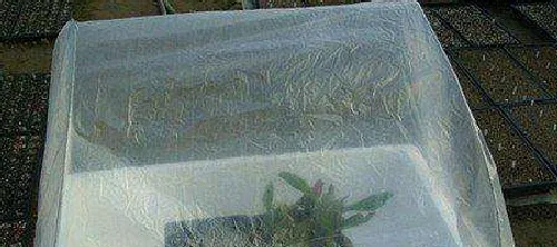 别以为找到泡沫箱子就算结束了,还要找几根铁丝。把铁丝固定在泡沫箱子上面,但是不能喝箱子平齐,要比泡沫塑料高出来一块,最好做成弧形。如果不行的话,也可以做成三角的,就像小屋的房盖一样支起来。然后把多肉放进去,最外面在罩上一层塑质布。不过塑料布不要完全封死,因为我们还是要随时打开照料一下多肉们的。肉肉比较多的朋友可以选择多做几个,不必把所有的肉肉都挤在一起。