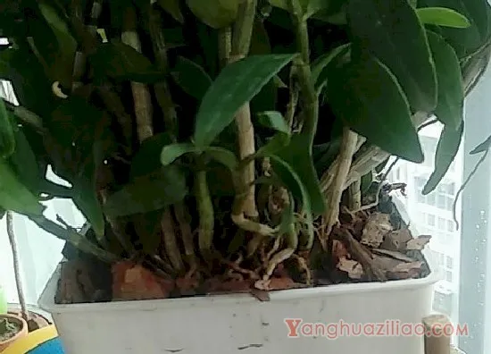 石斛分株前:分株前控制浇水,让盆中的土壤适当干燥,使根部变白,使易碎易断的肉质根变软,分株时不会伤到过多的根,取出时相对容易分离,分株后也容易成活。