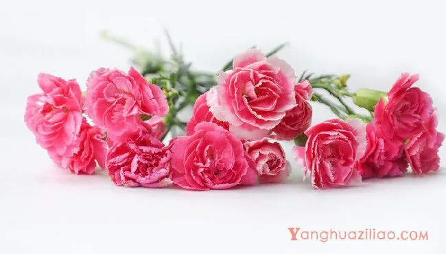 红色康乃馨的花语是崇拜.热烈的爱,相信你的爱、思念.祝母亲健康长寿等等,黄鱼康乃馨的花浯是你让我感到失望、永远感谢、对母亲的感谢之恩等等。最常见的是红色康乃馨和粉色康乃磬。