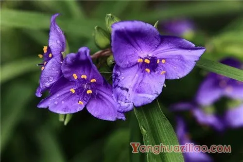 紫露草别号紫鸭趾草、紫叶草,因为花期长、茎竖立、节分明,有叶鞘,株形奇异秀美。树丛下片植,与鸢尾花长叶配植,株形、花蕾与花序适合欣赏。用于花坛、路途两侧丛植结果较好,也可盆栽供室内铺排,或作垂吊式种植。