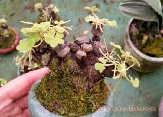 三叶草的发芽率还是比较高的,将其种子埋在土壤中,上面覆盖一层薄薄的细沙,然后放在温暖的阳光下,略保土壤微微湿润即可,一个月左右的时间就能生长出小苗,适当的让盆土干一点,控控水,这样可以促使它长出壮实的根系出来,然后就会就渐渐长成小小的老桩了。