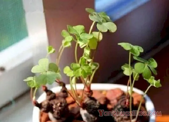 三叶草需要在泥土清洗以后修剪,主要是把准备留在花盆土壤上面的根系进行修剪,剪掉一些较细的毛根,这样会显得整个植株更有形状。