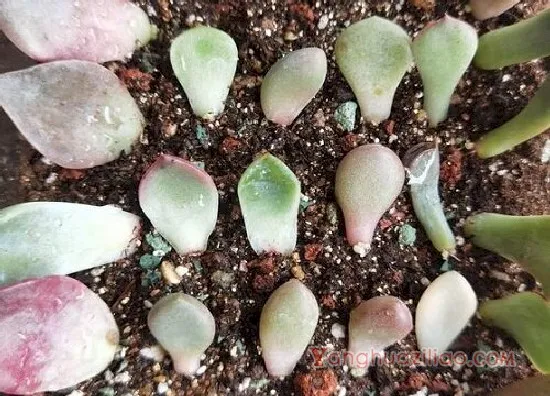 叶插的多肉,叶片要选健壮肥肥,发黄和有损伤的叶片不能要,这种叶片很难出芽,容易霉腐,还会传染给其它健康叶片,因此,要选带一些茎组织的叶片,这样才能长出快速丛生芽。叶片摆放有平放和斜插法2种,平放出芽会比较快。