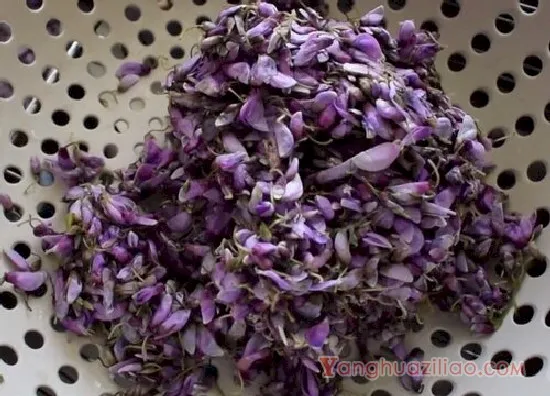 第一步:摘下含苞待放紫荆花一枝,摘下紫荆花的花苞,将其择洗干净,然后用清水泡一会儿。
