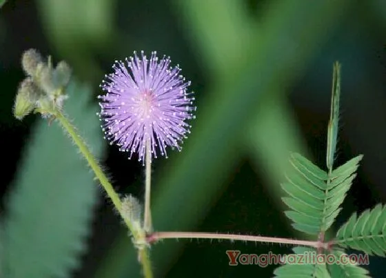 含羞草在刚长出来的时候,圆圆的叶子很小,基本上看不出来是含羞草,在发芽一个月之后就会生长很浓密了,叶子也会越长越多,等含羞草长到一定程度的时候分盆,成株后还会开出紫色的花朵,花后就长出长度为1-2cm的荚果。